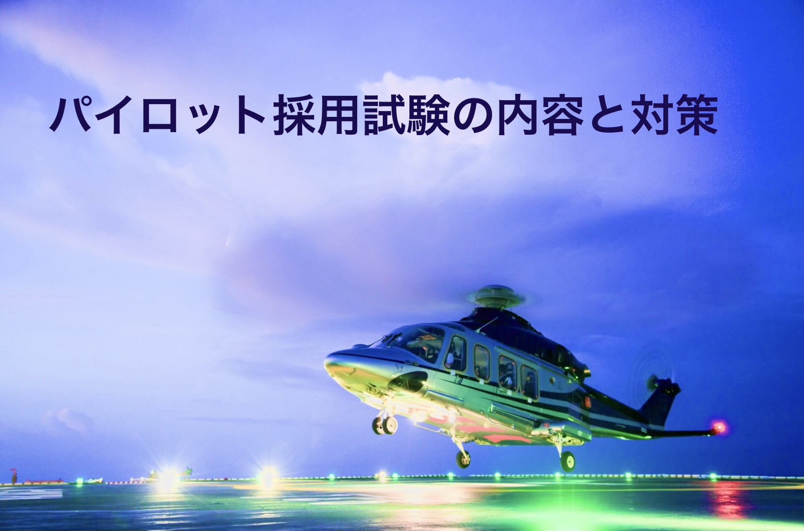 ヘリコプターパイロットの採用試験は、企業・機関によって内容が異なるが、一般的に学科試験・身体検査・適性検査・口述(面接)試験で構成される。事業用操縦士(回転翼)の資格保有が前提となる民間採用と、資格不問で組織内養成を行う公的機関採用の2パターンがある。