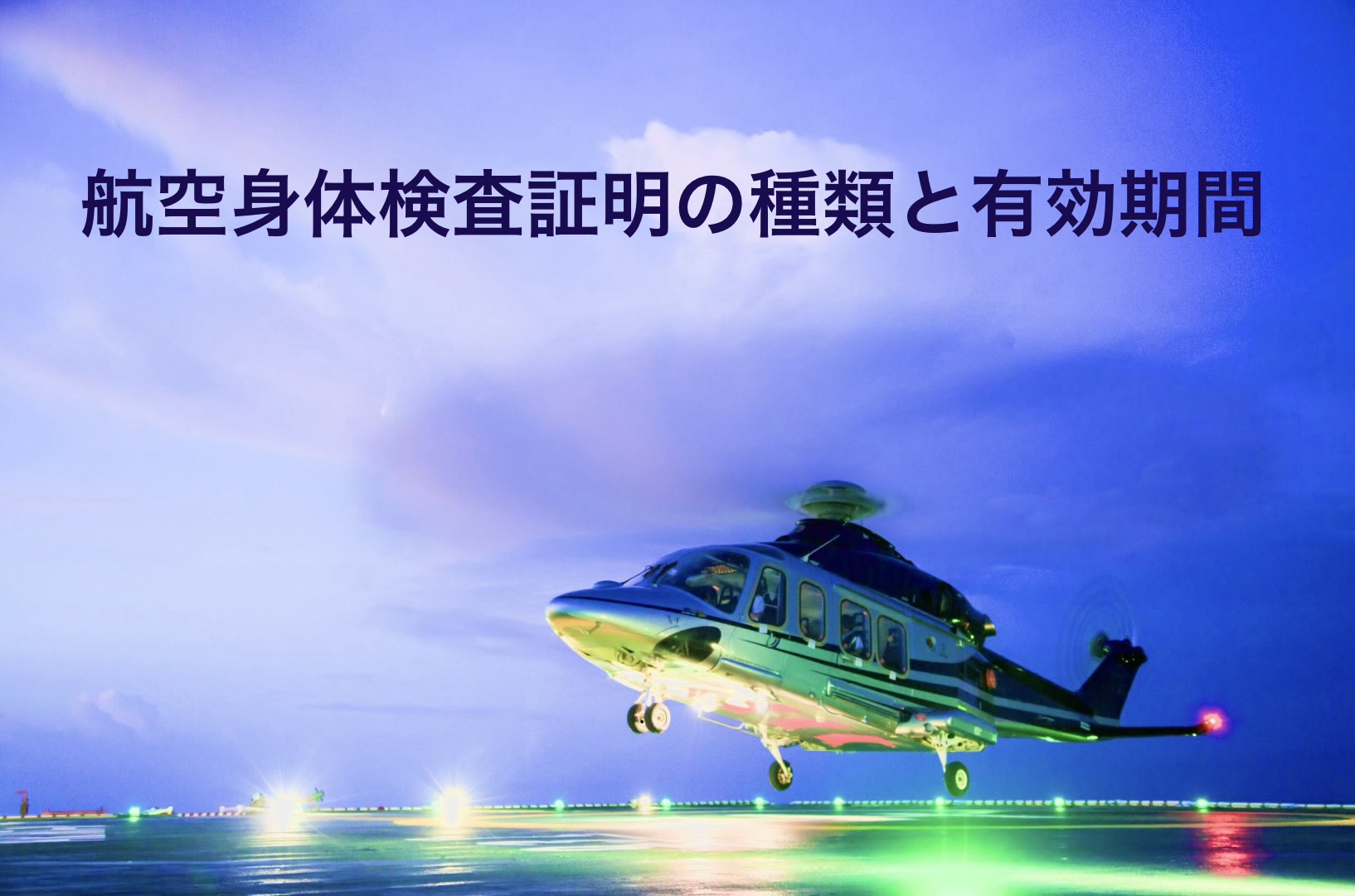 重要:ヘリコプターの事業用操縦士として勤務する場合は第一種航空身体検査証明が必要です。自家用操縦士として趣味で飛ぶ場合は第二種で足ります。